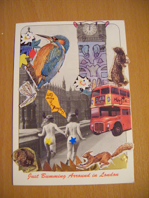 First,i bought this 10p postcard in London,then try to find the image i want,then cut-stick,paint color,then it's all done!